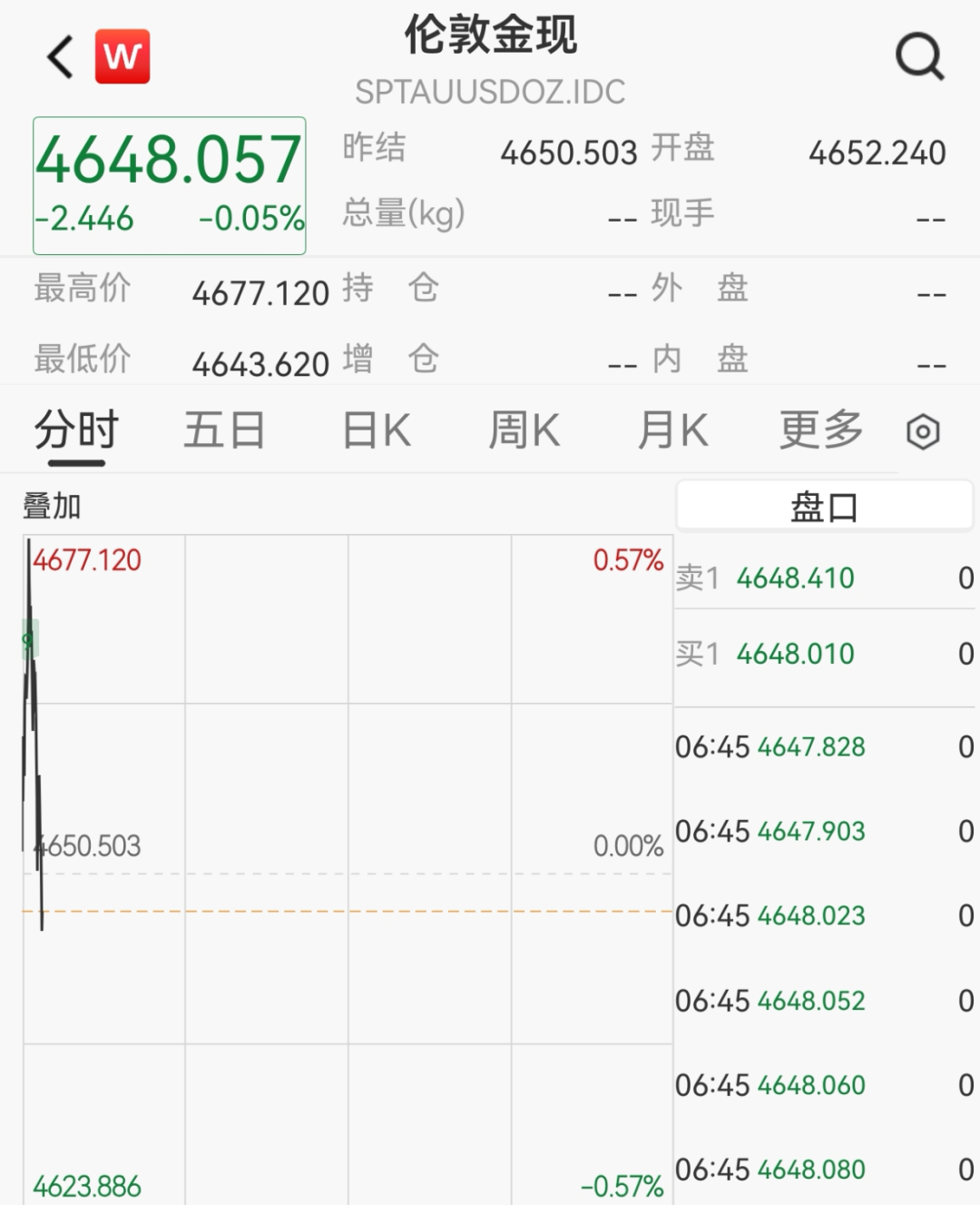 贵金属方面,继昨夜震荡后,3月20日亚洲早盘,黄金白银高开后直线跳水。截至北京时间6:47,现货黄金跌0.05%报4648.057美元/盎司,现货白银跌0.55%。